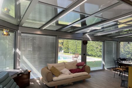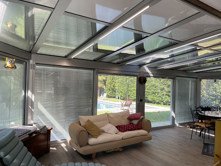 La Veranda è una struttura vetrata che chiude il balcone, il terrazzo o parte del giardino, mantenendo in comunicazione un ambiente della casa.